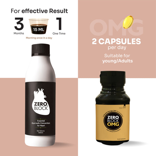 ZERO BLOCK - Proven Ayurvedic Concoction for Heart Care, BP & Cholesterol Management - 500ml